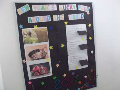 ぜひ立ち止まって、めくってほしい。新しい年の始まりに、食文化を通して世界を感じられるようにしたい。そんなALTの思いや願いが伝わってくる掲示物です。