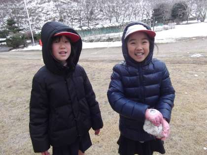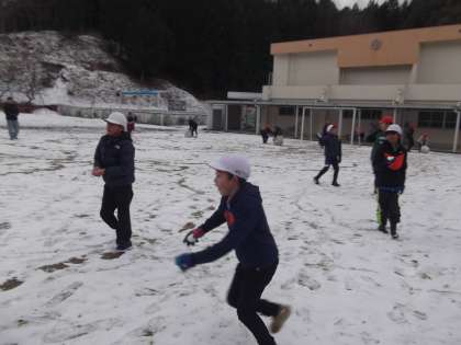昨日の朝から降り積もった雪が、今日になってもまだ校庭に残っていました。子どもたちは、のびのびタイムの時間を心待ちにしていた様子です。放課になると、勢いよく外に飛び出し、雪遊びが始まりました!