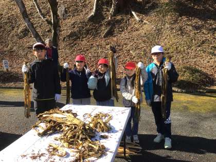 楮の皮をむき終わりました これから、むいた皮を吊るして乾燥させます