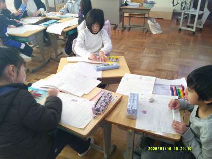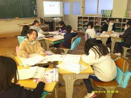 表にまとめた後は、教科書の例を参考にしながら、読み手に分かりやすく伝える文章づくりに挑戦しました。「くらべて」「つたえる」ために、どんな順番で書くとよいか、どんな言葉を使うと違いがはっきりするかを考えながら、一人ひとりが工夫して書き進めました。