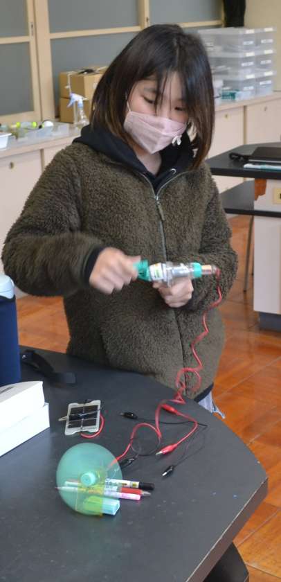 さらに、光電池を使って太陽の力を活用。光の当たる角度を変えることで回転の速さが変化し、「太陽の光ってすごい!」と自然エネルギーの可能性にも目を向けることができました。