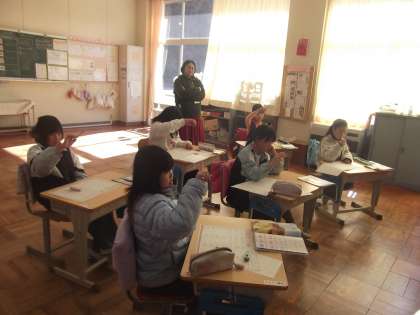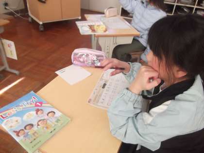 ただ書くだけでなく、形の特徴を比べたり、読み方とのつながりを考えたりすることで、英語への興味がさらに深まっている様子が伝わってきます。3年生の柔らかな発想と学びへの前向きな姿勢が光る時間となりました。