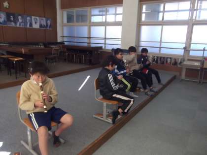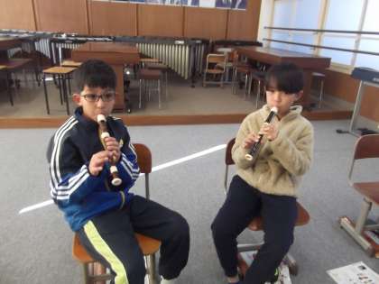 3・4年生は、音楽の時間にリコーダーで「オーラリー」の練習に取り組んでいます。曲名を伝えると、「練習してきたよ!」「楽譜を見なくてもできるよ」と、自信に満ちた声がたくさん聞こえてきました。