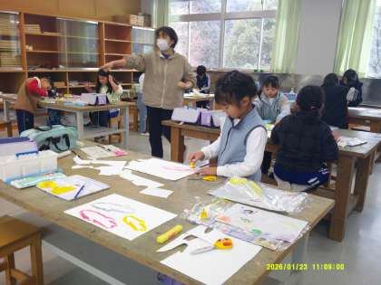 1/23 2年 図工「ステンシルはん画」