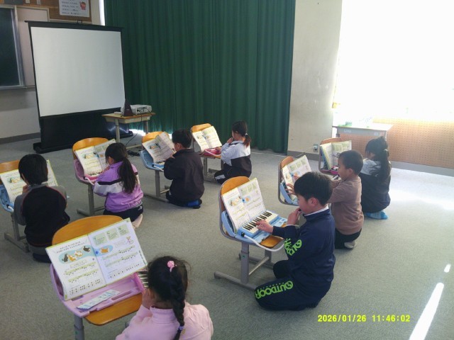 「ドは親指、レは人さし指…」と確認しながら、一つ一つの音をていねいに吹く姿が見られました。わからないところがあると、隣同士で「ここだよ」「こうすると弾きやすいよ」と教え合いながら練習する姿も見られ、あたたかい雰囲気の中で学びが深まっています。