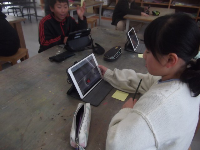 「自分のアニメが一番おもしろい!」と誇らしげに語る子もいて、それぞれの作品にユーモアや独自の工夫が光っていました。30秒ほどの短いアニメですが、実際には300枚もの写真を少しずつ動かして撮影しており、高学年らしい集中力と粘り強さを感じさせます。
