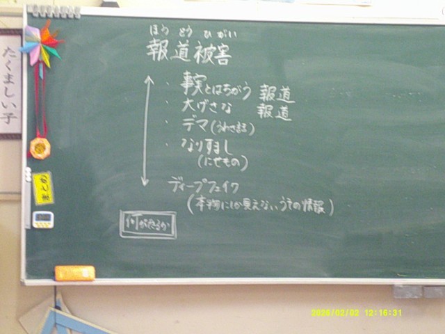 さらに、現代の社会で問題となっている報道被害についても考える時間を設けました。事実と異なる報道、デマ情報、なりすまし、ディープフェイクなど、情報をめぐるトラブルが増えていることを知り、「情報を受け取る側の姿勢」がとても重要であることを実感しました。
