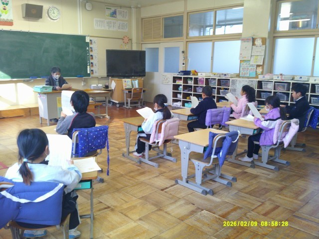 担任からの「もう少しゆっくり」「大きくはっきり」「上手になったね」「すごく感じが出ているよ」といった助言にも、子どもたちは「はい」と元気に応え、みんなで一つの発表をつくり上げていく喜びを感じながら取り組んでいます。
