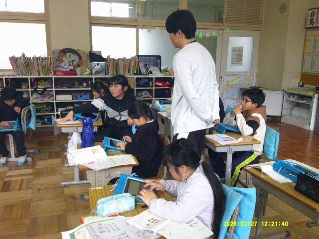 教科書を参考にしつつ、タブレットに発表メモを書き込む姿はとても真剣です。数字の読み取りや意見のまとめ方など、それぞれが工夫しながら、自分の伝えたいことを形にしていました。