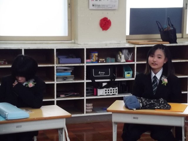 学級では、6年間の歩みを振り返る写真が映し出され、その一枚一枚に、成長の足跡とたくさんの思い出が詰まっていることを感じました。そんな時間の中で披露された、担任の歌とギターの演奏は、子どもたちの心に深く響いていました。