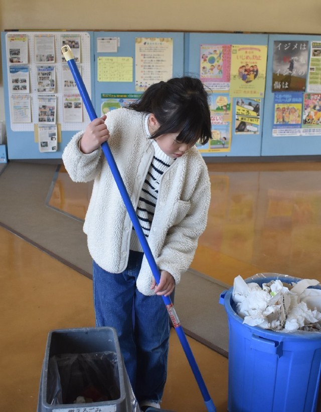 引っ越しの後には、一年間お世話になった教室の最後の掃除を行いました。床や棚、黒板などを丁寧に掃除しながら、子どもたちは教室に対して「ありがとう」という感謝の気持ちを込めて取り組んでいました。