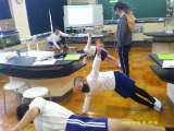 「わたしたちの体と運動」という単元です。片手バランスやうでずもうでは、体のどの部...