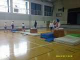 とび箱運動です。台上前転と抱え込み跳びです。とび箱の段数を1段ずつ高くしてあって...