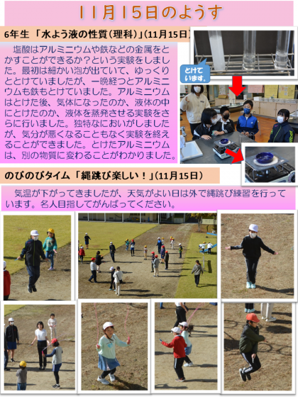11月15日のようすをお知らせします。