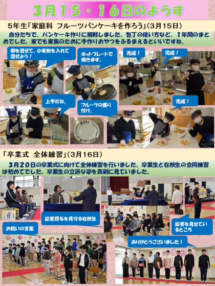 3月15日と16日のようすをお知らせします。