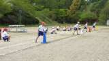 3,4人のグループに分かれてバトンの受け渡しの競争です。バトンゾーンの中でいかに...