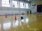 2つのチームに分かれてコーンを回って走る競争です。今日はコーンを置く場所を工夫し...