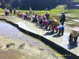 1〜4年の田植え作業の後は、5,6年生が総仕上げ! 朝からの作業の疲れも見せずに...