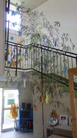 企画委員会主催で作った七夕飾りが、吹ぎ抜けにあります。中部小全員の願い事が短冊に...