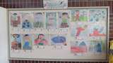 1・2年生の「ぼく・わたしの すきな のうさくぶつ」の作品掲示、見ていて楽しいで...