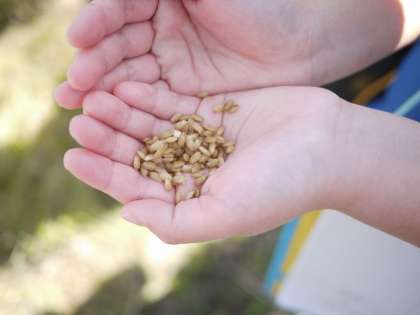 今年度は地域の方のご協力を得て、5年生が米作り体験をします。今日は、米作りの第一歩、籾播きでした。籾播きから収穫まで自然農法での米作りです。米作りを学びつつ、米作りを通して様々なことを学んでいくと思います。秋の収穫が楽しみです。
