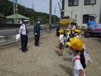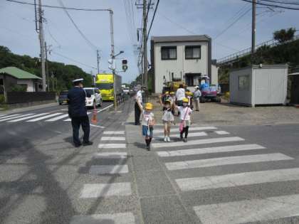 昨年度は休校の関係で実施できなかった交通安全指導。今年度は大畑駐在所員と交通指導員のご協力をいただき、金曜日の午前中実施しました。実際の交差点で安全な渡り方を実地練習でした。手を挙げてしっかり渡る大畑っ子です。(1,2年生が行いました。)
