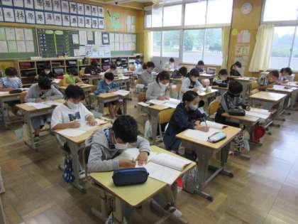 算数の問題に取り組む4年生。6年生に負けないぐらいシーンとして問題に取り組んでいました。