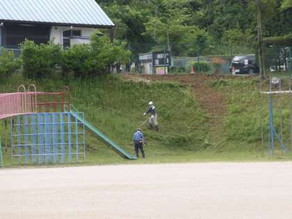 昨日予定していた地域ボランティアによる草刈りを今朝行いました。各地区から草刈り機持参で20名近くの方が集まっていただきました。1時間の作業でしたが、皆さん慣れたもの、あっという間に学校中がスッキリしました。本当にありがとうございました。また、秋にお願いします。