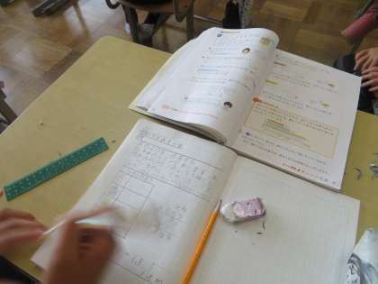 という問題に取り組んでいました。自分の考えを友達と交流した後、全体で考えました。