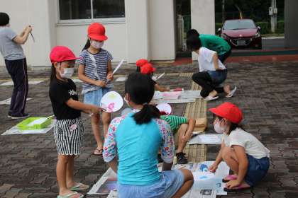 「1年生ともっと仲よくなりたい」という6年生がカラフルタイムを計画しました。6年生は、クラス会議を何度も開き、「コロナ禍でもできること」や「楽しい名前」などを考えました。6年生といっしょに水遊びやシャボン玉遊びなどを楽しみ、1年生は笑顔いっぱいでした。