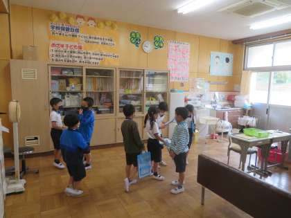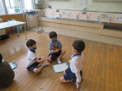 生活科の学習として、「学校あんない」を行いました。2年生は、大好きな大畑小学校を1年生に案内するために、下見をしたり、説明の文を考えたり、準備を進めていました。「学校あんない」が終わると集合場所にはグループの輪が自然とでき、笑顔が増えていました。