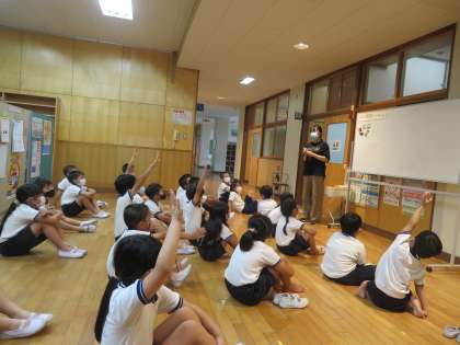 1・2年生の身体測定がありました。測定の前に、養護教諭の先生といっしょに「メディア機器の付き合い方」を考えました。「メディア機器とは何か」を知ると、子どもたちから「やりすぎると目が悪くなる」「夜遅くまでやると眠れなくなる」など、たくさんの意見が出ました。9月から毎週学習用タブレットを持ち帰っていますが、これからも正しい使い方を考えていきます。