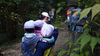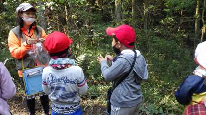 レンジャーの方といっしょに秋の豊田の森を歩くと、いろいろな生き物を発見。