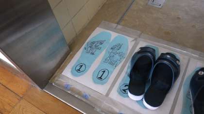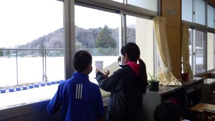 例年以上に教室の換気に取り組んでいます。みんなが忘れず換気に取り組めるように保健委員会が教室の窓にひと工夫。(トイレのスリッパにもひと工夫)
