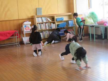 普段は、縦割りのなかよし班で掃除をしている1年生も、この日は、自分たちで掃除をしました。ほうきやぞうきんの使い方が上手になっているだけでなく、汚れをさがしたり協力したりする姿に成長を感じます。