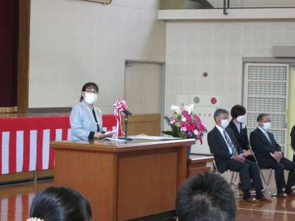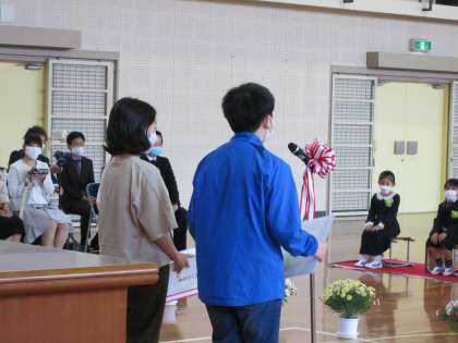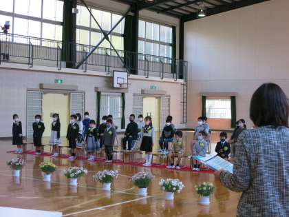 6年生が、区長さんや地域コーディネーターの方といっしょに1年生の入学をお祝いしました。