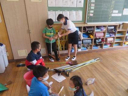 そうじ場所や分担、道具の確認だけでなく、道具の使い方やぞうきんのしぼりかたを教える班もありました。