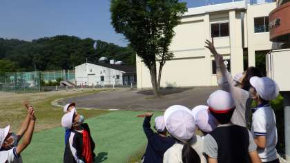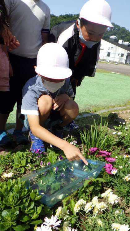 自分たちで大切に育てて成虫になったモンシロチョウをみんなで見送りました。