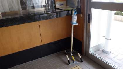 篠原町の松美工業の方から、足踏み消毒スタンドをいただきました。