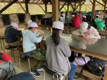 雨の中の入所式でしたが、所員の方からの「晴れでも雨でも楽しめる、活動できることが本当の力ですね」との言葉通り、5年生の力が試される2日間ですね。