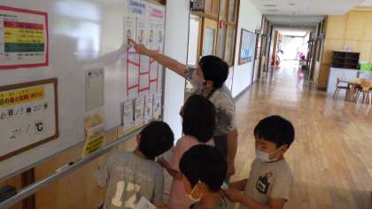 野外学習の引率で養護教諭が不在のため、他校の非常勤養護教諭の先生が、2日間、大畑小学校に勤務してくださいます。事前打ち合わせでは、アレルギーなど健康面についての情報交換をしました。