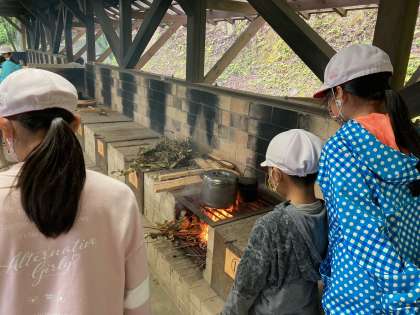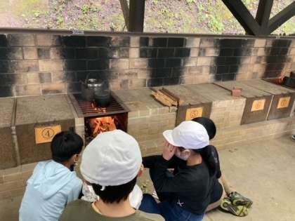 雨や風の悪条件の中、全部の班が自分たちで火を作り出しました。