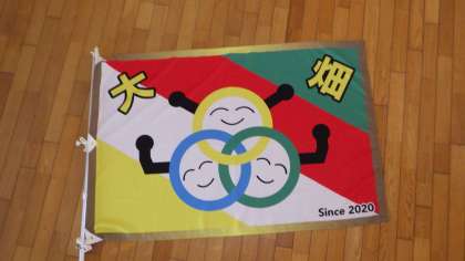 これは令和2年度に作成した「大畑フラッグ」です。コロナ禍に子どもたちが生み出した新しい思いと大畑小ならでは持ち味をこれからも大切にしていきます。