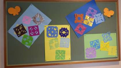 今年もあおばの子が作った掲示物(写真下)で廊下が明るくなっています。