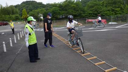 交通安全子ども自転車愛知大会に、大畑小学校5・6年生の有志が出場します。7月21日に名古屋市で開催される大会に向けて、5月から週2回、大畑公民館で交通安全指導員の方の指導で練習に取り組んでいます。