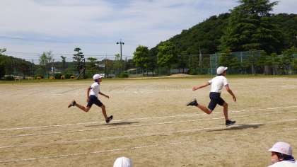 3・4年生は、「走り方教室」でオリンピアンに教えていただいたことを思い出しながら50m走に挑戦しました。