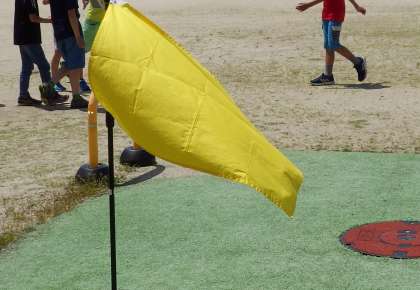 暑さ指数が28度を越える場合は、黄色の旗で児童に知らせます。