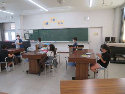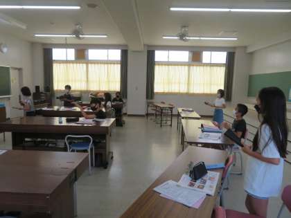 音楽に合わせて、いろいろな打楽器をリズムに乗って演奏していました。