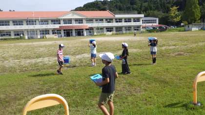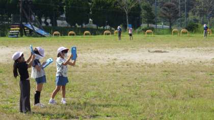 校庭で見つけた秋を、クラスの友達に発表しました。