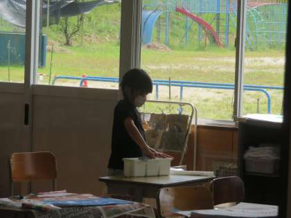 自分のペースで落ち着いて片づけをしている姿に成長を感じます。